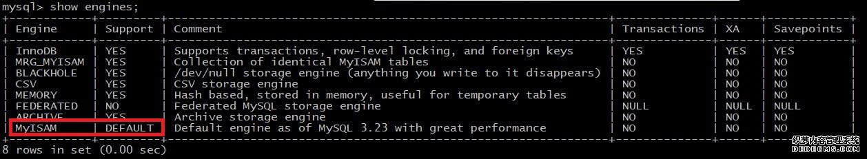 用show engines; 命令可以显示当前数据库支持的存储引擎情况,如图1所示: