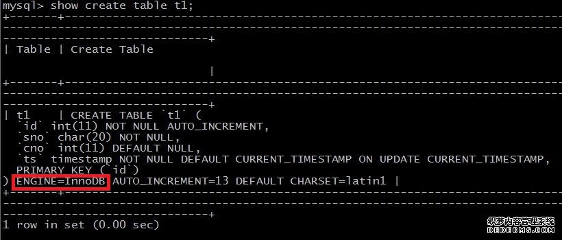 图3 显示创建表t1的语句