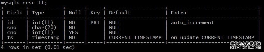 2.1Desc[ribe] tablename; //查看数据表的结构