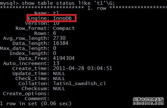 由上图可见当前系统的默认数据表类型是MyISAM。当然,我们可以通过修改数据库配置文件中的选项,设定默认表类型。