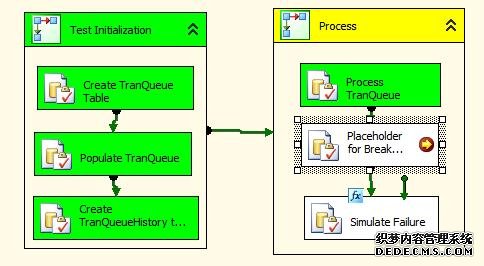 如果设置变量User::v_SimulateFailure的值为0,不会执行Simulate Failure任务,就不会回滚,TranQueue中的记录会被写入到TranQueueHistory中。这里有一个很有意思的语句: