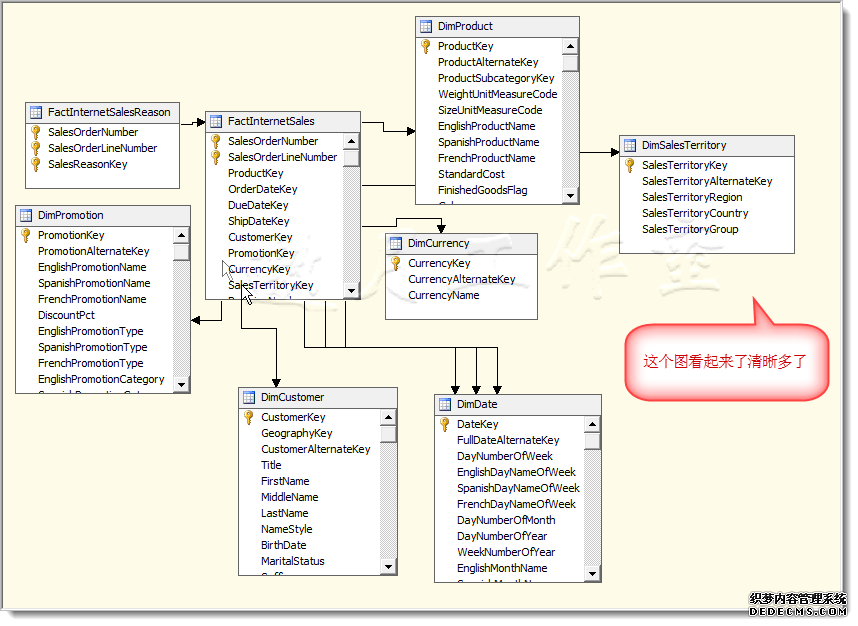 如果表过多,上一步得到的图过大,即使缩放也不易察看整体结构。此时,可以在视图设计界面,新建一个diagram,命名为Internet_Sales