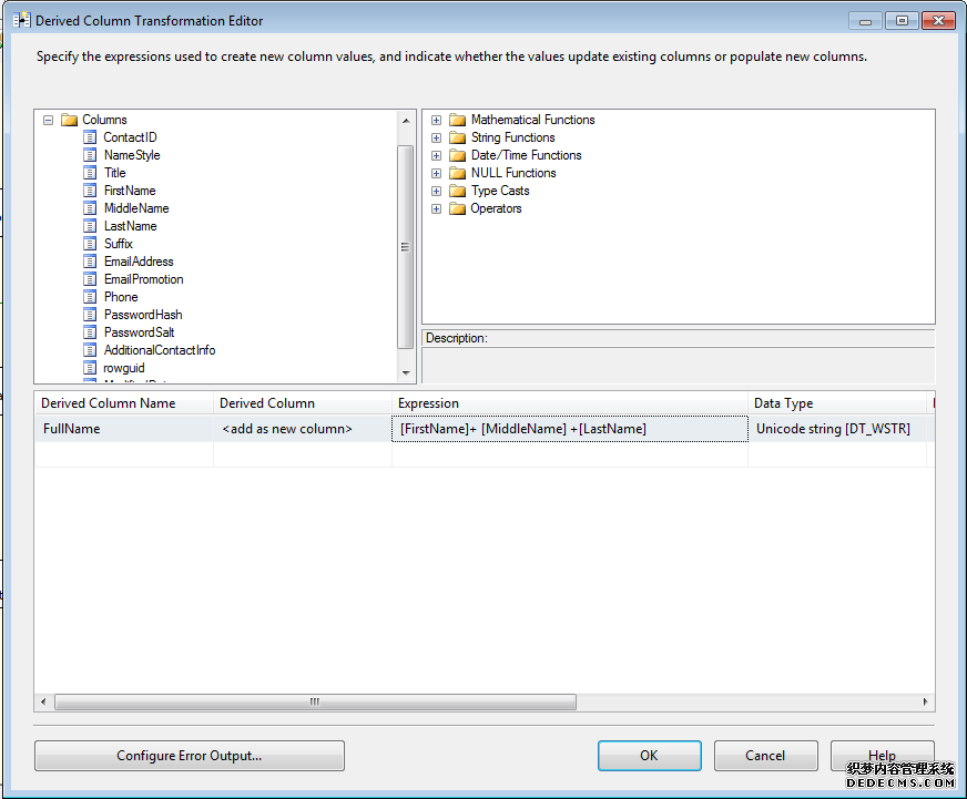 导出列任务可以从从另一个输出中创建一个新的列。例如,是订单数量和订单价格相乘导出一个新的列订单总价格,如图4-23也可以使用ISNULL函数填充当前时间或者某一天的空白数据。这是五个可以代替T-SQL代码编程的task之一。