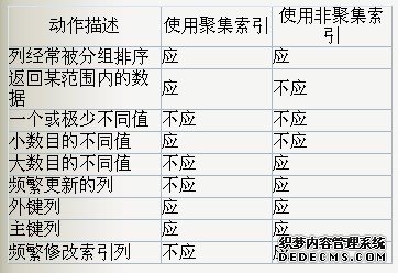下面的表总结了何时使用聚集索引或非聚集索引很重要):