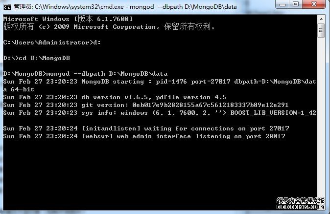 > mongod --dbpath D:\MongoDB\data