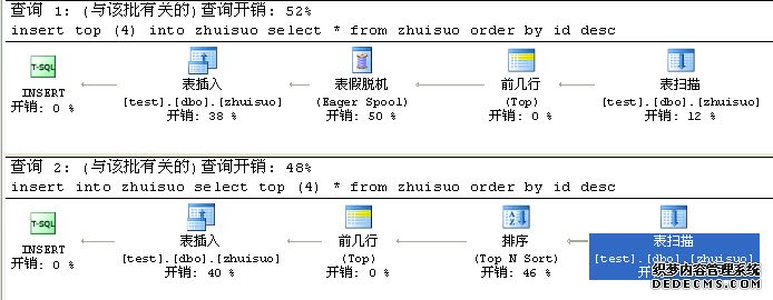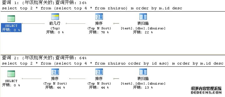 第二种扫描完zhuisuo表后先升序取4行(top N Sort)然后再把这4行降序取2行(top N Sort)