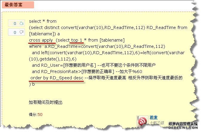 4、top除了这些还有更多的用处,就比如之前我使用Top N sort 加 apply回答过一个网友的问题
