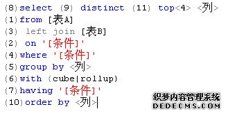 最后附上一张关于我用序号表示逻辑查询处理的步骤