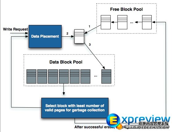 Wear leveling算法可以有效缓解写入放大的问题,但是不合理的算法依然会导致写入放大,比如用户需要写入4k数据时,发现free block pool中没有空白的block,这时就必须在data block pool中选择一个包含无效数据的block,先读入缓存中,改写后,将整个块一起写入,采用wear leveling算法依然会存在写入放大的问题。