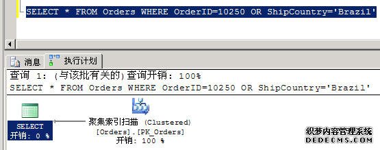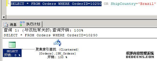 下方的 SQL 语句,由于 OrderID 字段有设索引,因此下图 1 的「执行计划」,会以算法中的「二分搜寻法」在索引中快速查找 OrderID=10250 的记录