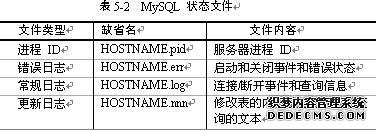 除数据库目录外,MySQL 数据目录还包含许多状态文件。表10-3 概括介绍了这些文件。大多数状态文件的缺省名称从服务器主机名字中生成,在此表中表示为 HOSTNAME。