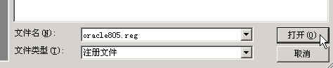 选择刚刚导出的oracle805.reg文件,点击“打开(O)”