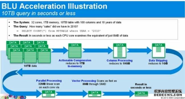“自动化工作负载管理”功能,IBM认为查询之间的资源争用是造成资源浪费的主要原因,这一功能让BLU加速器与传统DB2数据库相比在并发性上产生差异性优势。