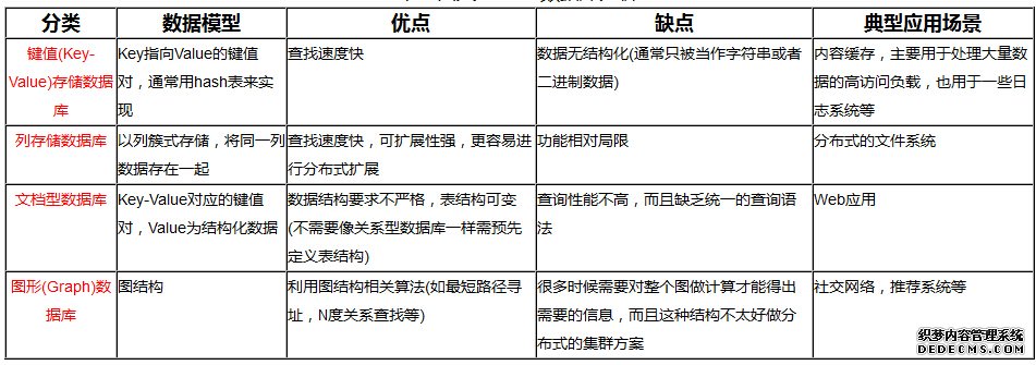一般将NoSQL数据库分为四大类:键值(Key-Value)存储数据库、列存储数据库、文档型数据库和图形(Graph)数据库。它们的数据模型、优缺点、典型应用场景如表1所示。
