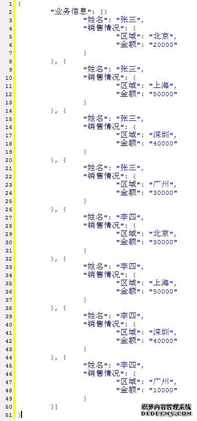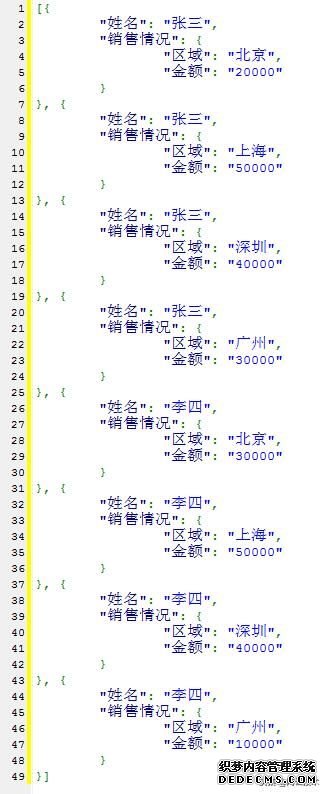 有没有发现什么不同?“销售情况.区域”、“销售情况.金额”中的点号,自动将“销售情况”作为了上级节点,“区域”和“金额”作为了子节点。