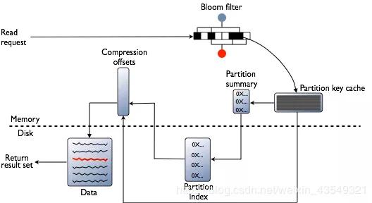 Filter.db这是SSTable的Bloom过滤器,简单的讲,它告诉你,你要的Key,在我这里有没有。Bloom过滤器的工作方式是将数据集中的值映射到位数组,并使用散列函数将较大的数据集压缩为摘要字符串。根据定义,摘要使用的内存量比原始数据少得多。它速度快,可能误报,但不会漏。简言之,有可能告诉你有,但是没有。但绝不会告诉没有,却有。注意!这里划一个重点,Cassandra会维护一个Bloom filter的副本在内存里面。所以,这一步不一定会有实际IO。在书上也提到,如果加大内存,是可以减少Bloom过滤器误报的情况。
