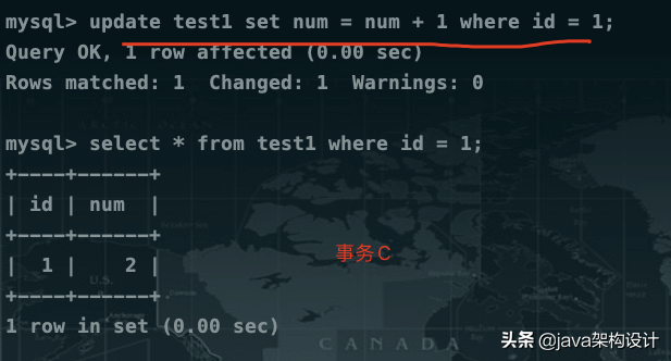 - 事务A:num=1事务B:num=3