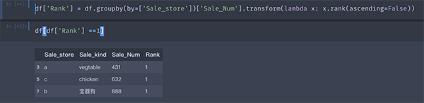- df['Rank'] = df.groupby(by=['Sale_store'])['Sale_Num'].transform(lambda x: x.rank(ascending=False))