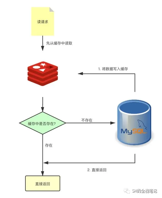 对于读请求,会先去 Redis 中查询数据,如果命中了就会直接返回数据。而如果没有从缓存中获取到,就会去 DB 中查询,将查询到的数据写回 Redis,然后返回响应。