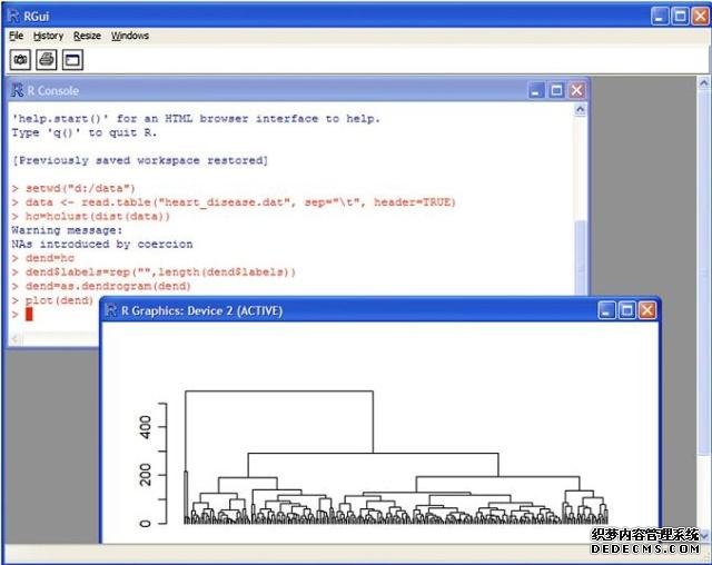 R软件的首选界面是命令行界面,通过编写脚本来调用分析功能。如果缺乏编程技能,也可使用图形界面,比如使用R Commander(http://socserv.mcmaster.ca/jfox/Misc/Rcmdr/)或Rattle(http://rattle.togaware.com)。