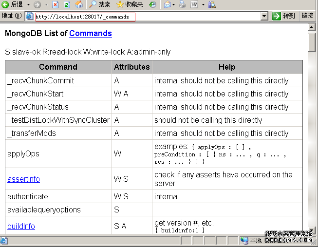 这里mongod就会为我们显示command列表,大约有90多个,这是显示截图: