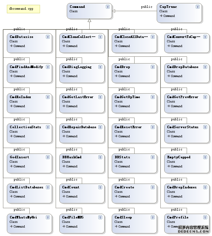 今天就专门用一篇篇幅来着重介绍一下其Command的体系架构,并用例子来介绍mongod是如何将Command引入其中的。