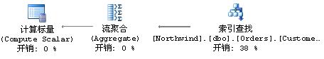 被选择的行被传递到嵌套循环运算符,嵌套循环则会开始进行内层循环的运算。内层循环由计算标量、流聚合、索引查找组成。