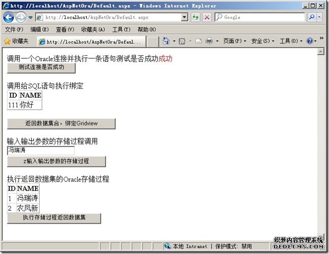 ASP.NET访问Oracle 的简单例子