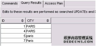 如果通过添加 ORDER BY 子句按提取的 city 值排序,那么结果集仍然是相同的:PARIS、paris 和 Paris 被当作相同的值。