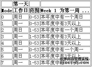 注意,假如有一个日期位于前一年的最后一周, 若你不使用2、3、6或7作为mode 参数选择,则MySQL返回 0: