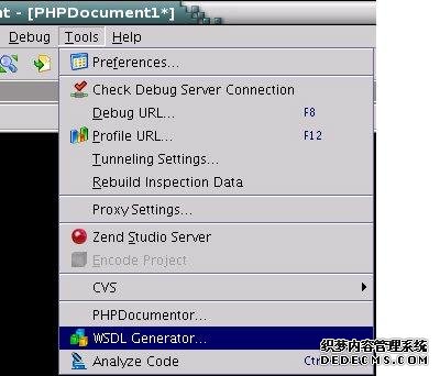 正确使用这些 PHPDoc 注释之后,通过执行 Studio 的 Tools 菜单下的 WSDL 生成器,您可以让 Zend Studio 为该类自动生成合适的 WSDL 文档:
