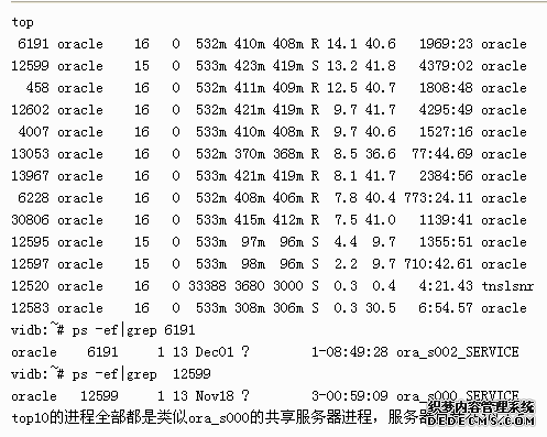 如果用户请求数大于共享服务器进程数,那么肯定有请求是在排队,假定目前一个共享服务器进程正在执行一个长事务,那么请求队列就要一直等,直到当前的事务结束。从用户请求的角度看,很明显,响应的时间加长了。从服务器角度看,我们先看一下由网友 WESTLIFE_XU 提供的实例: