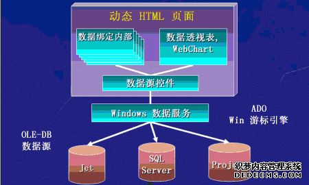 此外还有一个数据源控件,负责在那些控件上设置诸如数据源和数据字段这样的 Internet Explorer 数据绑定属性。数据访问页使用 Internet Explorer 中的许多强大功能,因此只需设置属性便可以实现这些丰富的数据绑定功能。Microsoft Windows® 数据服务如 ADO 和 OLE DB 游标引擎)可用于进行数据连接和将数据下载到本地。