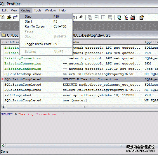 一旦追踪被保存到文件里或者数据库表格里,你就可以回放这一过程中所发生的所有活动——设置你希望的断点——这和你使用开发人员的IDE调试器很类似,如图C所示。