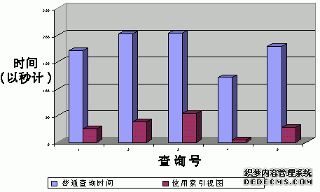 下图说明了查询优化器使用索引视图时一般能够提高多少性能。提供的查询复杂程度各不相同例如,聚合计算的数量、所用表的数量或谓词数),并包括来自实际生产环境的数百万行的大表。