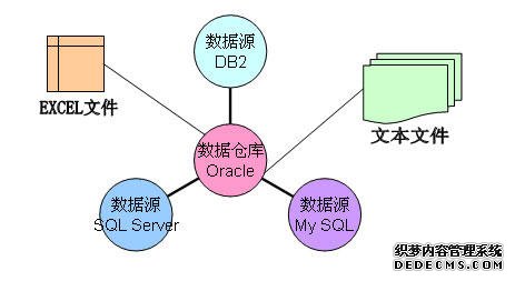 例如,应用Oracle作为数据仓库的支撑环境,它有很多数据源,是由业务生产系统源源不断产生的,可能包括DB2、SQL Server、MY SQL等等不同的源数据。