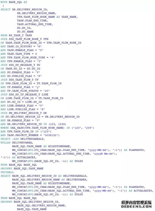 我在同事的交接文档中找到了问题 SQL,代码如下: