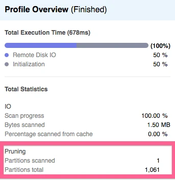 通过执行上述查询,我们在6亿行的正好中间找到了目标记录,其返回的时间为88毫秒。如下面的Snowflake Query Profiler截图所示,速度快的主要原因在于:该查询只扫描了整个16Gb压缩数据中的1.5Mb,而且除了一个微分区之外,它几乎跳过了所有不相关的内容。