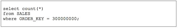 由于Snowflake掌握了每个微分区中、每列的最小和最大值,因此它可以直接跳过那些与查询条件完全不匹配的微分区。为了演示该聚合的性能效果,我们创建了一个包含有6亿行和16Gb压缩数据的表。该表由一个唯一性的密钥(ORDER_KEY)所标识,因此我们将其表示为聚类密钥。