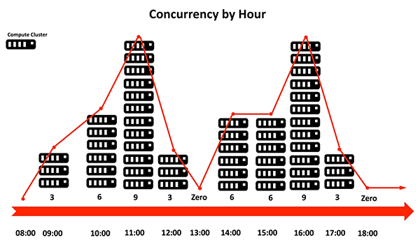这种调整方法在英国食品配送服务商Deliveroo那里得到成功应用。2017年,根据最终用户需要在近20TB的数据中,每小时开展7,000多次查询的需求,他们使用到了Snowflake的自动化横向扩展资源的方式。