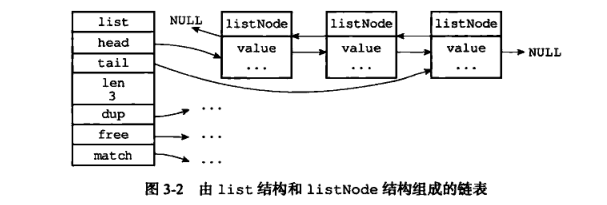 - 无环:表头节点的 prev 指针和表尾节点的 next 指针都指向 NULL,对链表的访问都是以 NULL 结束。