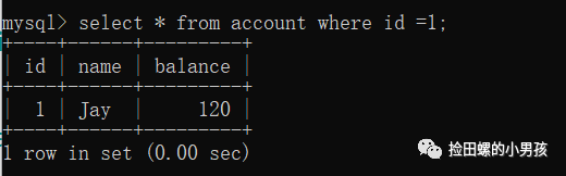 接着回事务A的窗口,再查account表id=1的数据,结果如下:
