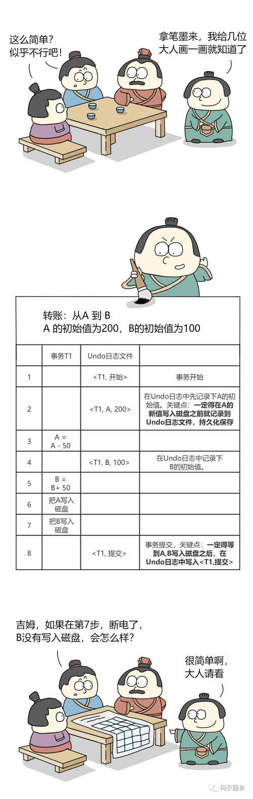 后记:数据库的事务是一个非常重要的特性,这篇漫画主要讲它的实现原理,尤其是在极端情况下(如断电)如何保,