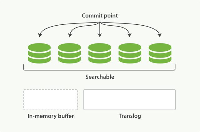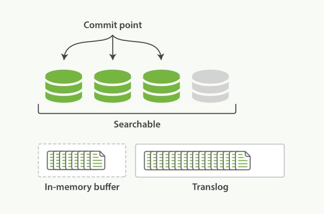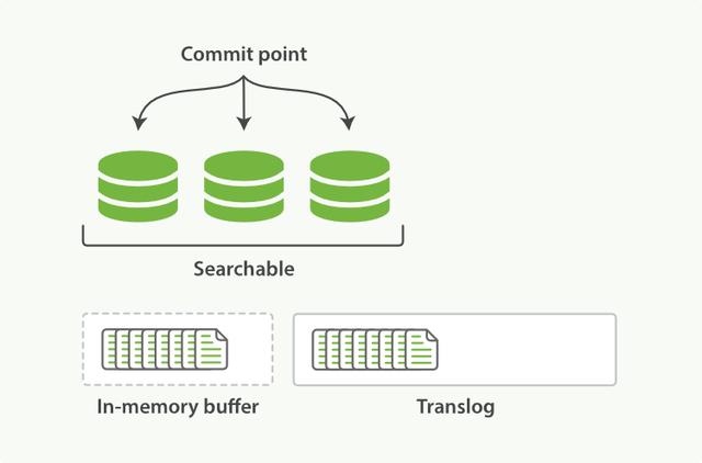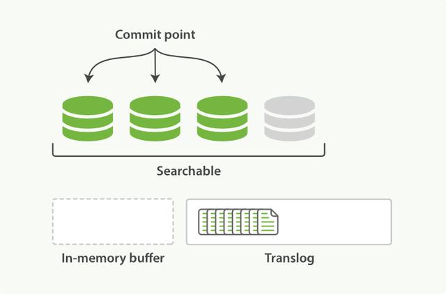 每次写入新文档时,都会先写入内存中,并将这一操作写入一个translog文件(transaction log)中,此时如果执行搜索操作,这个新文档还不能被索引到。