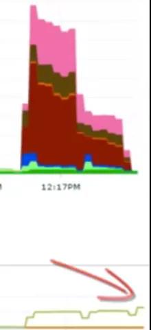 下面这张图,上半部分是 wait,下半部分是吞吐量: