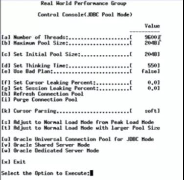 因为这视频是英文解说且没有字幕,我替大家做一下简单的概括:视频中对 Oracle 数据库进行压力测试,9600 并发线程进行数据库操作,每两次访问数据库的操作之间 sleep 550ms,一开始设置的中间件线程池大小为 2048: