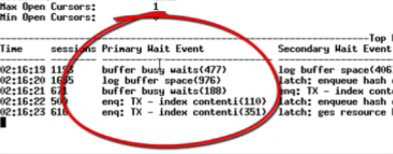 各种 buffer busy waits,数据库 CPU 在 95% 左右(这张图里没截到 CPU)。