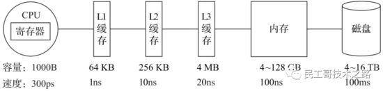 在计算机系统的体系结构中,存储系统是一种层次结构。典型服务器计算机的存储层次结构如图1所示。一个实用的经验告诉我们,存储媒介距离CPU越近,则访问数据的速度越快。