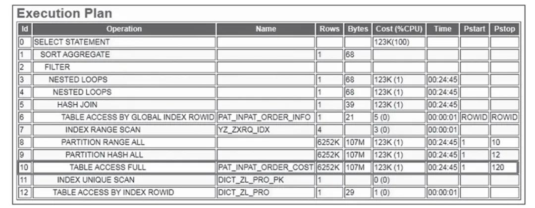 - | PAT_INPAT_ORDER_COST | 6 | 108 | 6 (0)| 00:00:01 |