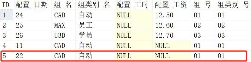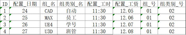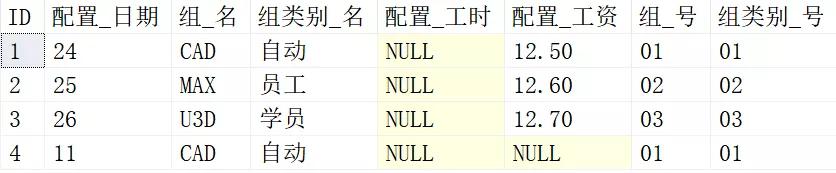 3、当出勤表中的日期被更新的时候,配置表里是否会插入了一条数据?我们先看看配置表中的数据